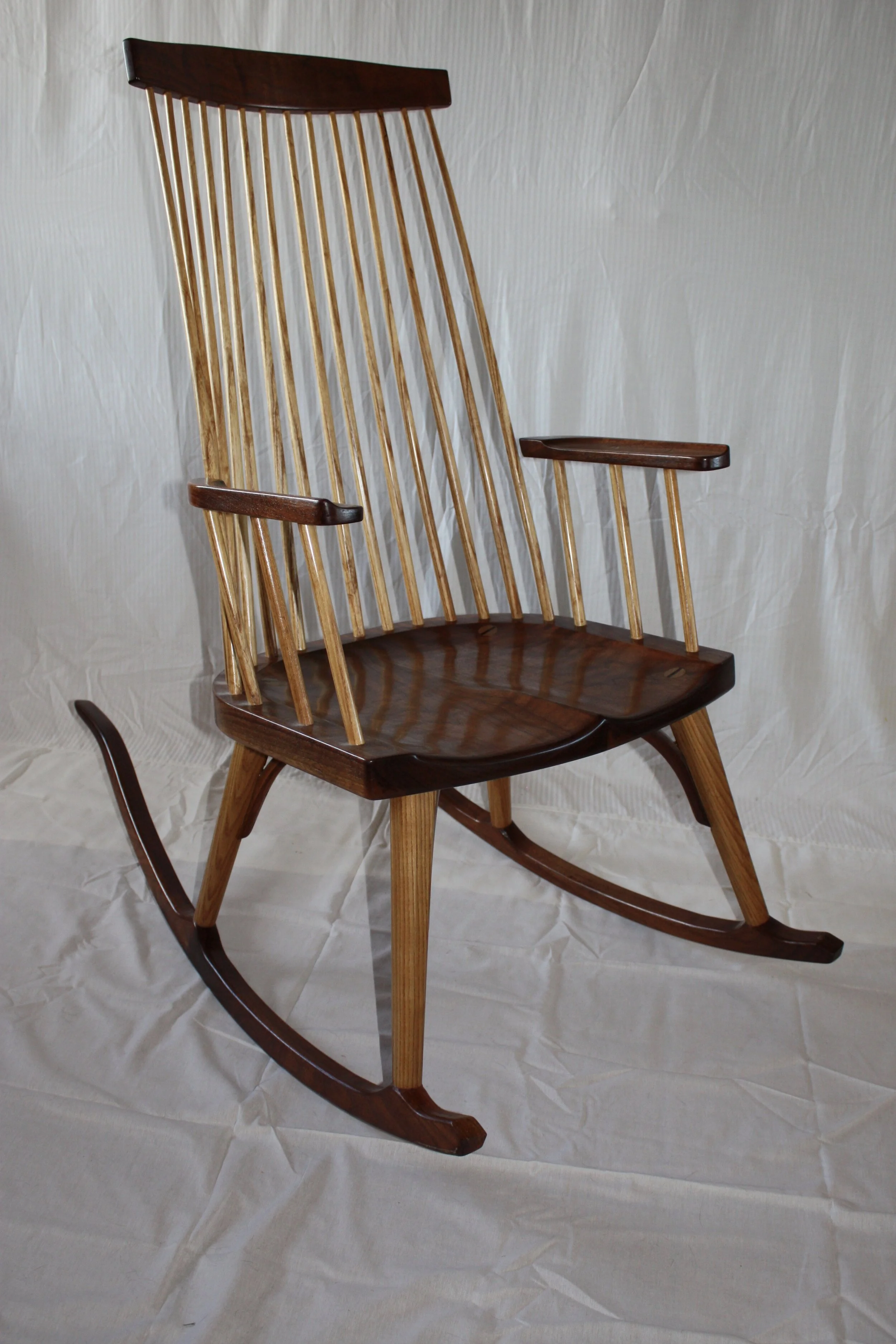 Chairs Cherry and Ash Stool Fireside Chairs, Ottomans, and Blanket Chest Nakashima Inspired Red Oak & Bubinga Dining Chair Moser Tribute Walnut & Ash Rocking Chair